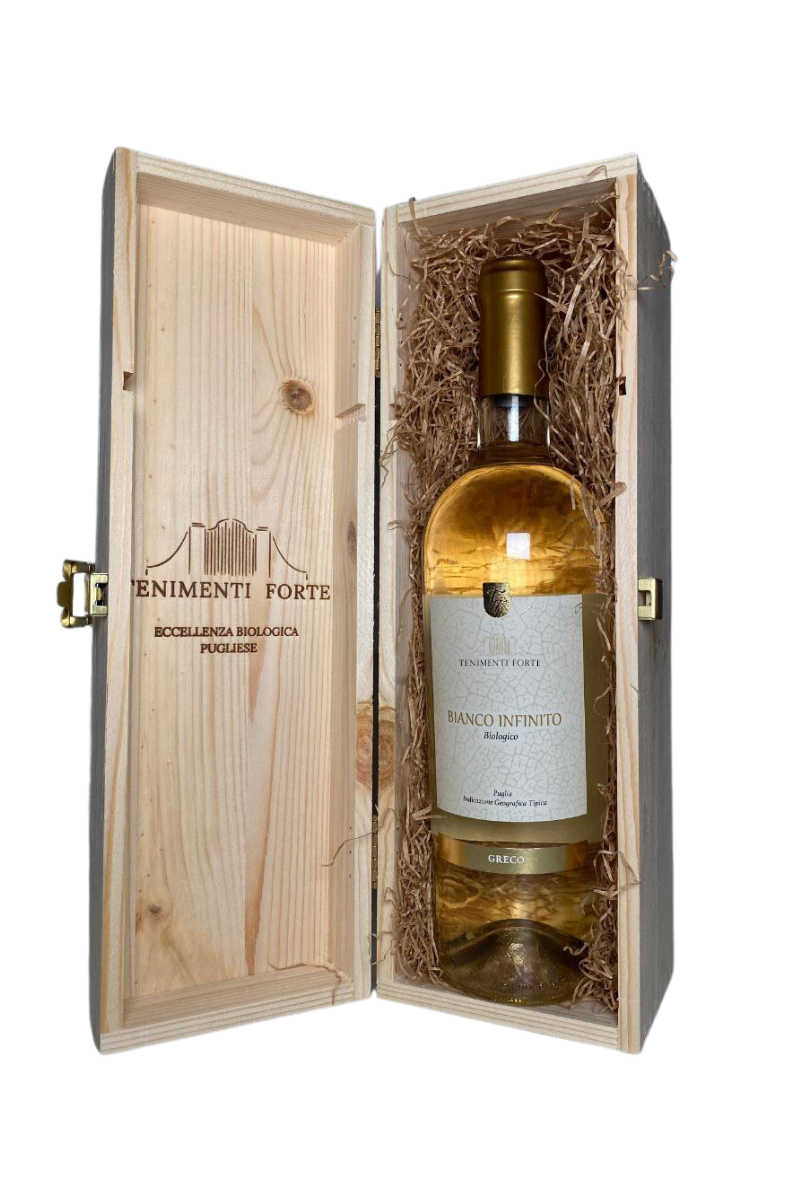 Bianco Infinito - Eleganza e Freschezza, realizzato con uva bianca Greca dall’incantevole colore giallo paglierino e profumi floreali di agrumi e pesca, 100% Biologico e ricco di antiossidati. Al palato è armonioso, fresco e leggero, perfetto per momenti di relax e cene in buona compagnia.