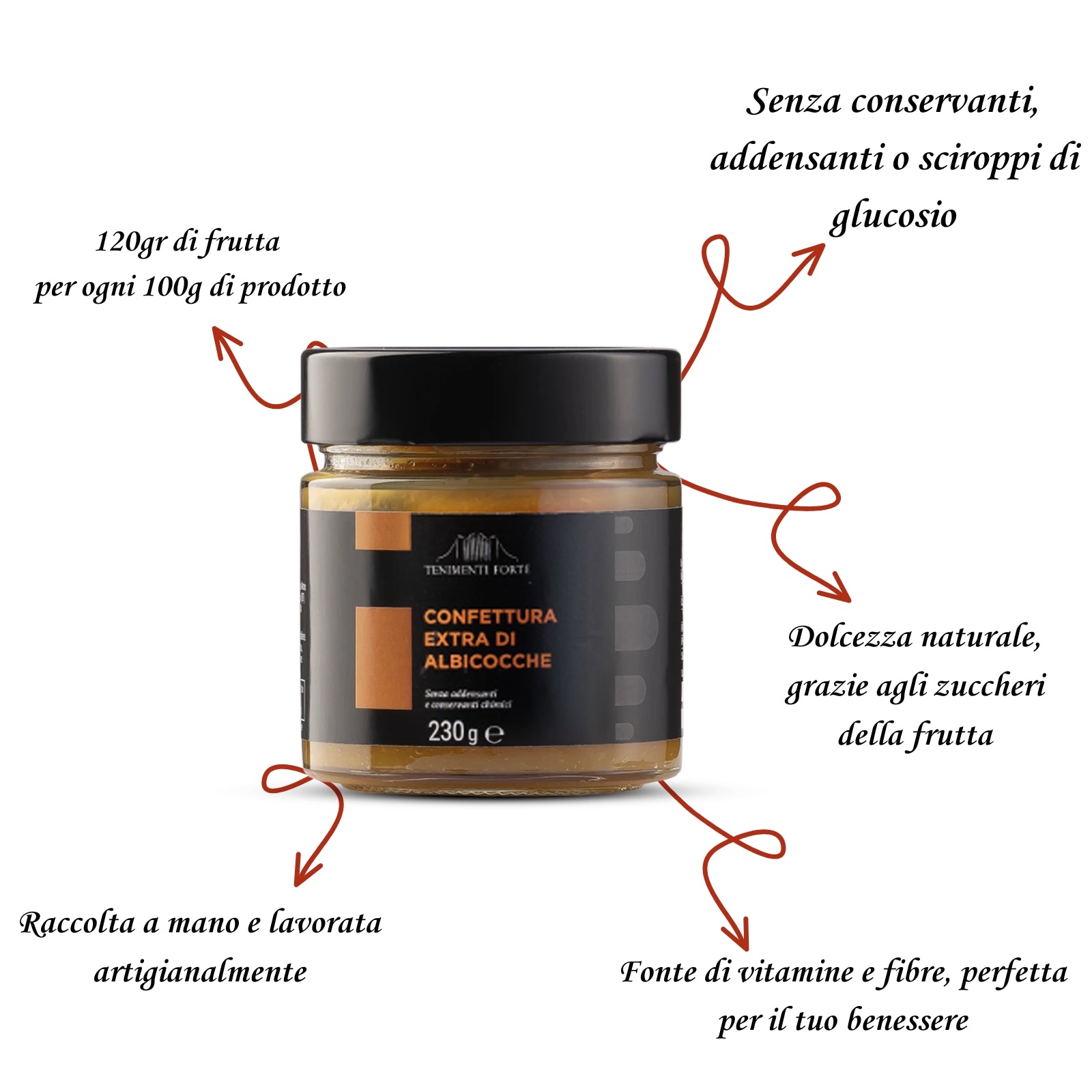 Tipologia: La Confettura Extra di Albicocche è prodotta con albicocche di altissima qualità, coltivate nel rispetto della terra e dell’ambiente, 100% vegetali e 100% biologiche.